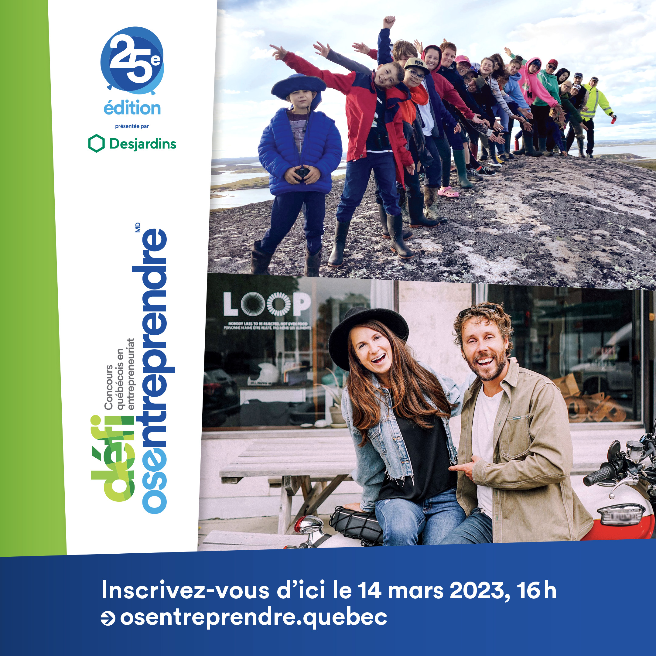 New Carlisle, le 12 janvier 2023 – Les co-présidents d’honneur du Défi OSEntreprendre François Savoie et Emmanuelle Bois, donnent le coup d’envoi de la 25e édition et invitent les élèves, étudiants, intervenants scolaires et entrepreneurs à s’inscrire d’ici le 14 mars 2023, 16 h.