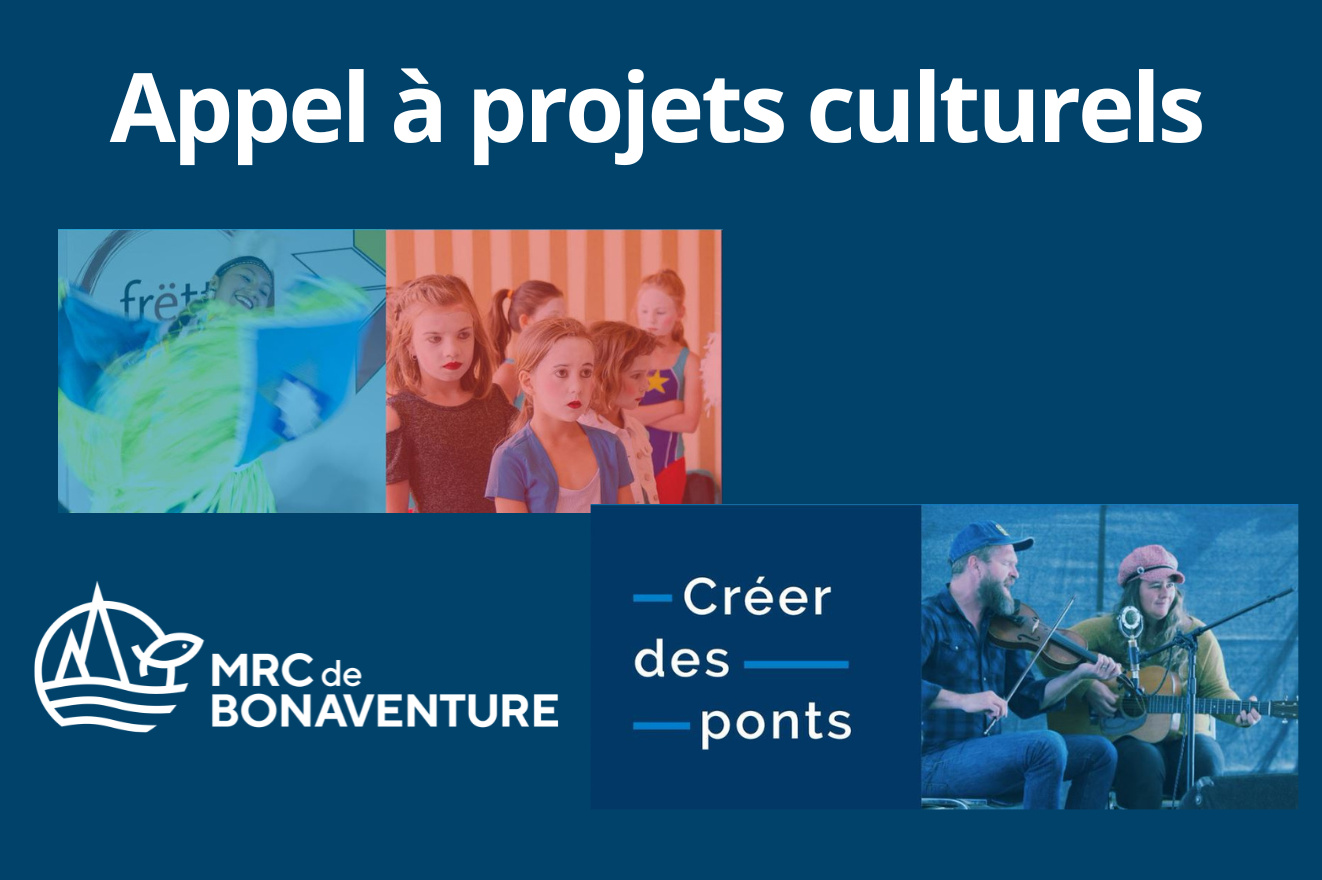 Outre l’appel de projets, la MRC de Bonaventure planche également sur d’autres projets culturels, qu’elle portera elle-même ou qu’elle développera en partenariat avec d’autres organismes via des chantiers de travail. Les personnes et les organisations intéressées à prendre part au développement culturel du territoire sont invitées à consulter notre plan d’action culturel et à contacter Natalie Martin, l’agente de développement culturel responsable de ce dossier.