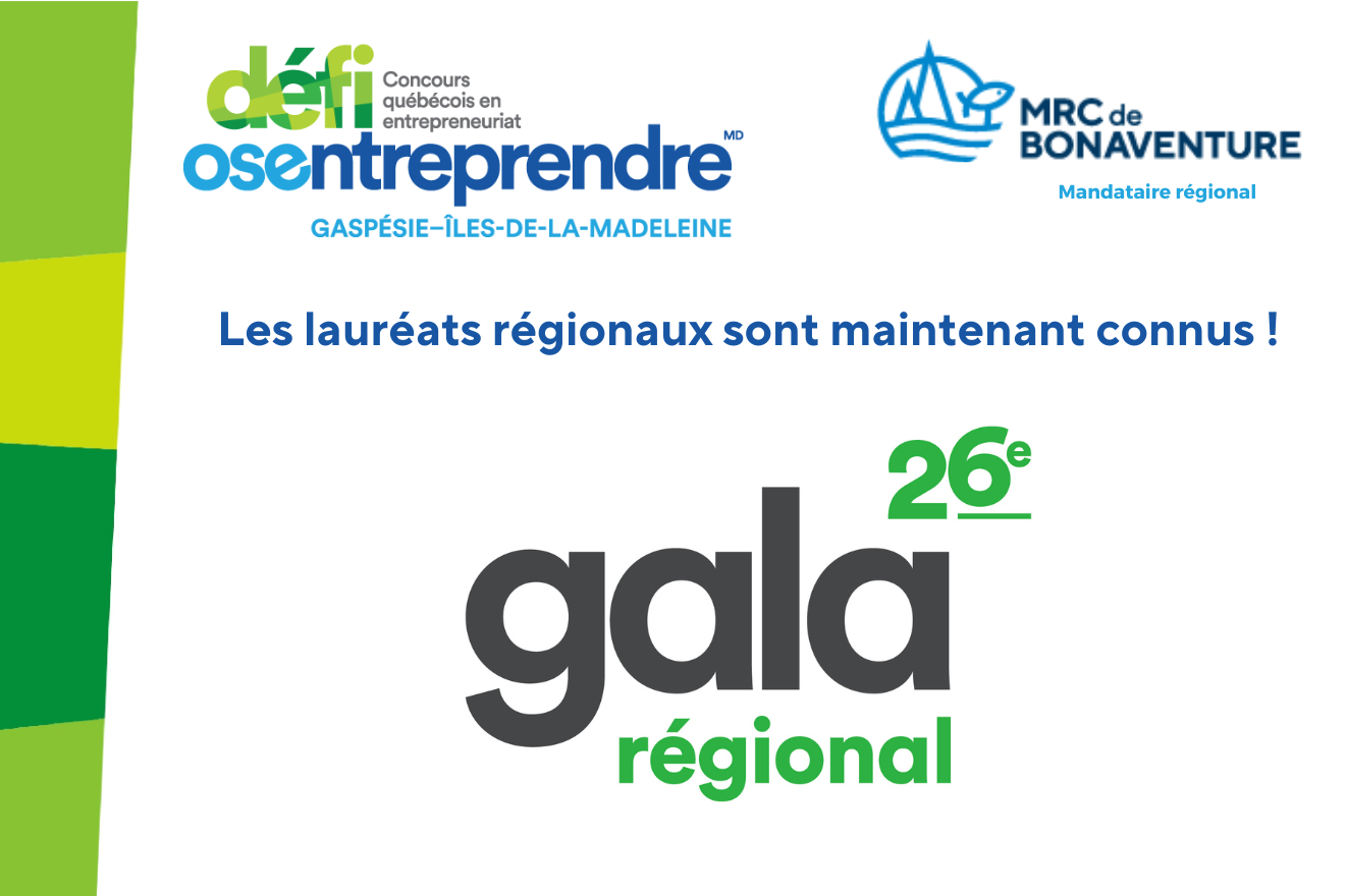 New Carlisle, le 26 avril 2024 – Le jeudi 25 avril avait lieu au Club de golf de Sainte-Anne-des-Monts, le 26e Gala du Défi OSEntreprendre Gaspésie et des Îles-de-la-Madeleine, qui a fait rayonner des jeunes et des entrepreneurs inspirants qui sont passés à l’action. Pas de doute que la région de la Gaspésie et des Îles-de-la-Madeleine peut être fière de son esprit d’entreprendre!