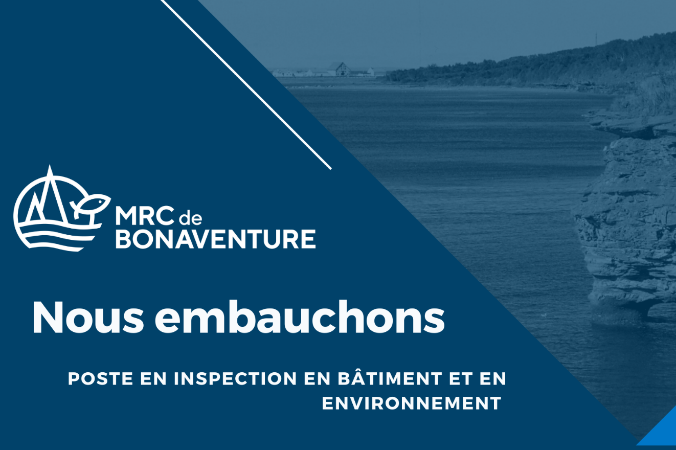 La MRC de Bonaventure est à la recherche d’un(e) inspecteur(trice) régional (e) en bâtiment et en environnement pour offrir le service d’inspection dans les municipalités/villes de New Carlisle, Paspébiac et Shigawake.